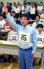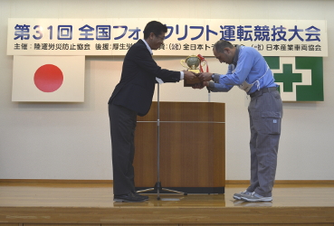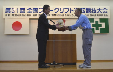 陸運労災防止協会会長賞を受け取る優勝者の渡辺浩司選手