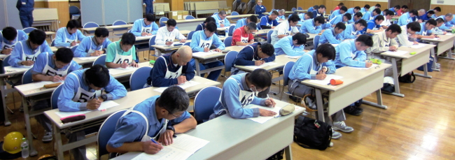 オリエンテーションが行われた後、競技が開始され、選手は、抽選で決まったゼッケン番号を胸に着けて、最初の学科競技に取り組みました。